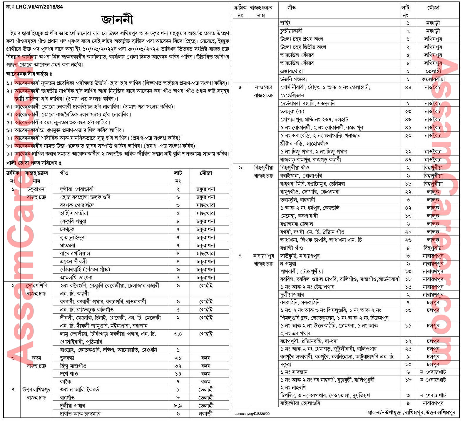 Candidates fulfilling the above mentioned eligibility criteria may submit their application in the standard form of application within stipulated date. Candidates have to submit their filled application in the respective revenue circle office or in the office of the Deputy Commissioner, Lakhimpur.